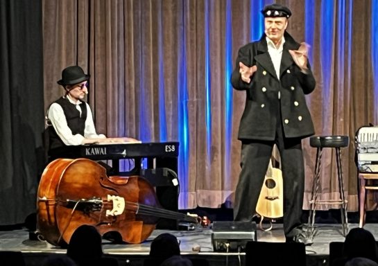 Musikalisch begleitet wurde Witthuhn von Wolfgang Völkl am Klavier, sie sorgten mit vielfältigen Instrumenten – bis hin zur Tröte – für den passenden Klangteppich. Gemeinsam trafen sie die Stimmung des Publikums, das summend und wiegend den bekannten Melodien lauschte. Natürlich durften die großen Klassiker nicht fehlen: „Flieger, grüß mir die Sonne“, „La Paloma“ und natürlich „Auf der Reeperbahn nachts um halb eins“, bei dem begeistert mitgesungen und geschunkelt wurde. Auch moderne Einsprengsel wie Rock’n’Roll-Passagen fügten sich überraschend stimmig in das Programm.