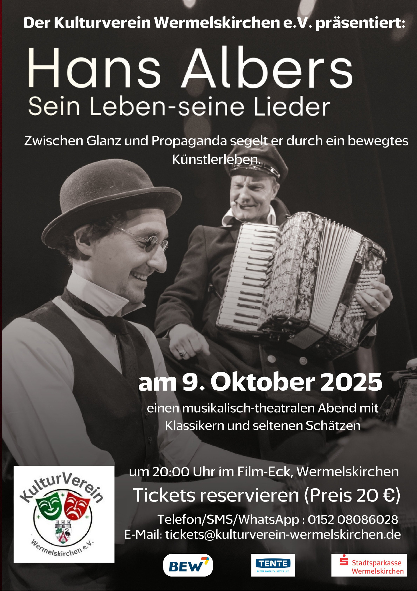 - 04.10.2025: Es gibt noch Karten für „Hans Albers: Sein Leben – seine Lieder“